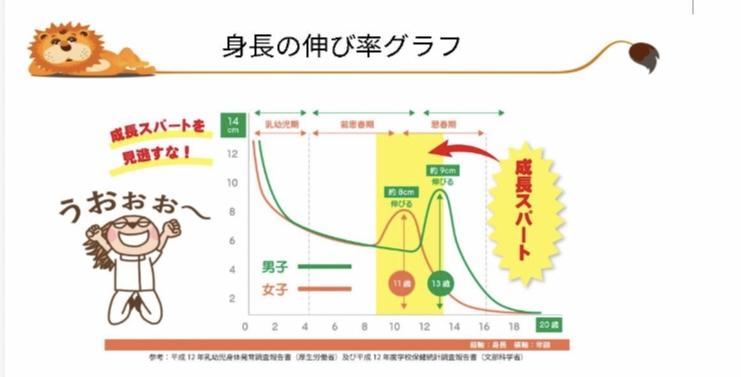 1 個人差はありますが男性では18歳、女性では16歳までが骨端線は存在すると 言われております。 特に男性は13歳・女性は11歳が成長のピークなのでその時期は大変効果的です。 |