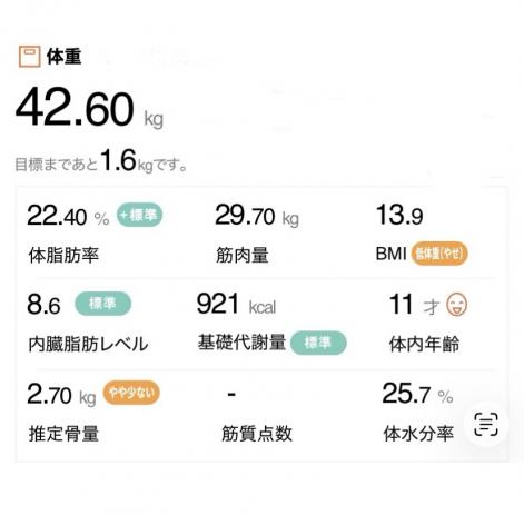 ・体組成計にて身体の数値のチェック
